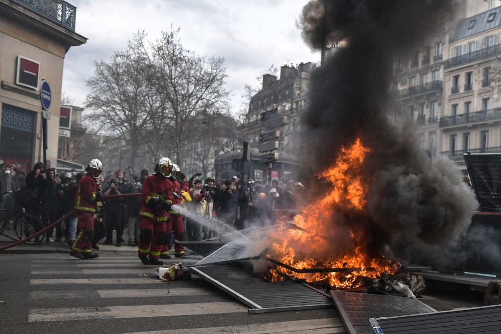 لكم أنه لا يوجد تعب. لقد سئمنا، لكن التعبئة مثل الماراثون: لن نستسلم، وقال مراقبون سياسيون إن الاستياء واسع النطاق إزاء التعديل الذي تسعى إليه الحكومة قد يكون له تداعيات على مدى أطول، بما في ذلك تعزيز محتمل لليمين المتطرف، وقالت الزعيمة اليمينية المتطرفة مارين لوبان، التي تعارض مشروع القانون، لتلفزيون بي،إف،إم “لست متفائلة بهذا القدر بشأن قرار المجلس الدستوري، لكن ماذا تريدون مني أن أفعل؟ أحرق سيارات؟ فقط سنقول للفرنسيين: صوتوا لصالح التجمع الوطني”، في إشارة لحزبها، ويقول ماكرون وحكومته إن القانون ضروري لحماية نظام المعاشات التقاعدية السخي في فرنسا من الإفلاس، وتقول النقابات إنّ هذا يمكن أن يتم بوسائل أخرى، بما في ذلك فرض ضرائب أكبر على الأغنياء، أو إجراء تغييرات أكبر في نظام المعاشات التقاعدية، وقال مسؤول نقابي لرويترز إن حركة الشحن في نهر الراين تعطلت بعد أن قطع العمال الكهرباء عند باب ممر مائي بالقرب من الحدود مع ألمانيا وسويسرا وتديره شركة كهرباء فرنسا المملوكة للدولة.