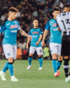 بات سباليتي عن 64 عامًا أكبر مدرب يتوج بطلاً لإيطاليا، محطمًا الرقم القياسي لماوريتسيو ساري المتوج في 2020 مع يوفنتوس عن 61 عامًا، واستحق الفريق الجنوبي اللقب، فهو صاحب أفضل هجوم برصيد 69 هدفا، وأفضل خط دفاع حيث دخل مرماه 23 هدفا فقط، كما أنه يملك هداف الكالسيو حتى الآن أوسيمهن صاحب 22 هدفا، وكانت أول محاولة في المباراة لنابولي اثر كرة رأسية للقائد جوفاني دي لورنتسو من مسافة قريبة اثر تمريرة عرضية للمقدوني الشمالي إليف إلماس (5)، لكن أودينيزي نجح في افتتاح التسجيل عندما تلقى لوفريتش كرة داخل المنطقة من ديستيني اودوجي فهيأها لنفسه وسددها قوية بيمناه في الزاوية اليسرى البعيدة لمرمى الحارس أليكس ميريت (13)، وكاد لوفريتش يضيف الهدف الثاني بتسديدة قوية من خارج المنطقة تصدى لها ميريت على دفعتين (31)، ورد أوسيمهن برأسية من مسافة قريبة مرت بجوار القائم الأيسر اثر تمريرة عرضية لإلماس (32)، ونجح أوسيمهن في إدراك التعادل مطلع الشوط الثاني عندما استغل كرة مرتدة من الحارس ماركو سيلفيستري اثر تسديدة قوية للدولي الجورجي خفيتشا كفاراتسخيليا من خارج المنطقة فتهيأت أمام الدولي النيجيري الذي تابعها من مسافة قريبة داخل المرمى (53)، وهو الهدف الـ22 لأوسيمهن هذا الموسم معززاً موقعه في صدارة لائحة الهدافين، وكاد المدافع البرازيلي رودريغو بيكاو يمنح التقدم مجددا لأودينيزي بتسديدة قوية من خارج المنطقة تصدى لها ميريت (60)، وأنقذ سيلفيستري مرماه من هدف ثان للفريق الجنوبي عندما تصدى لتسديدة “على الطاير” من داخل المنطقة للدولي البولندي بيوتر جيلينسكي من داخل المنطقة قبل أن يشتتها الدفاع (72).