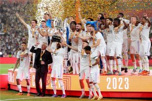 بات بنزيمة اللاعب الأكثر تتويجا في تاريخ النادي الملكي بالتساوي مع الظهير الأيسر البرازيلي مارسيلو، ويحلم ان ينفرد فيه في تاريخ العاشر من شهر يونيو المقبل في اسطنبول بقيادة فريقه الى لقبه الخامس عشر في المسابقة الام والذي سيكون اللقب رقم مئة في تاريخ نادي العاصمة الاسبانية العريق، وتعملق بنزيمة هذا الموسم حيث سجل ثلاثية في مرمى كل من بلد الوليد (6-صفر) وبرشلونة (4-صفر) والميريا (4-2)، كما سجل في مرمى ليفربول وتشلسي الانكليزي في دوري ابطال أوروبا هذا الموسم، ليؤكد بانه لم يفقد شهيته التهديفية، ورفع بنزيمة رصيده من الاهداف في صفوف ريال مدريد في الدوري الإسباني الى 236 وهو رابع افضل رصيد في تاريخ الدوري امام المكسيكي هوغو سانشيس. ويستطيع ايضا تخطى صاحب المركز الثالث تلمو سارّا مهاجم اتلتيك بلباو السابق (253) في حين يبدو صعباً الوصول الى رقمي ليونيل ميسي افضل هداف على الإطلاق مع 473 أو البرتغالي كريستيانو رونالدو في المركز الثاني مع 311 هدفا.