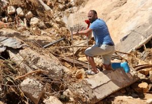تقول الأمم المتحدة إن أكثر من ألف شخص دفنوا في مقابر جماعية، وحذرت جماعات الإغاثة من هذه الممارسة، وأكدت السلطات الليبية إصابة 150 شخصا بالتسمم بسبب المياه الملوثة في المناطق المتضررة من الفيضانات، وقال محمد ونيس التاجوري إنه جاء إلى درنة من بنغازي على الساحل مع زملائه من طلاب الطب للقيام بأعمال التطهير والتعقيم، وأضاف بعد الفيضانات تحدث الأوبئة، ومع شروق شمس خفت حدة مشاهد الدمار مع إزالة أكوام الركام ووضعها على جوانب طرق خالية ورفع كميات من المعادن المتشابكة بعضها أجزاء من حطام سيارات، وافترش حمد عوض شارعا خاليا وبجانبه زجاجة ماء وأغطية سرير، وقال “أنا باق في منطقتنا في محاولة لتنظيفها والتحقق من المفقودين، الحمد لله الذي رزقنا الصبر”.