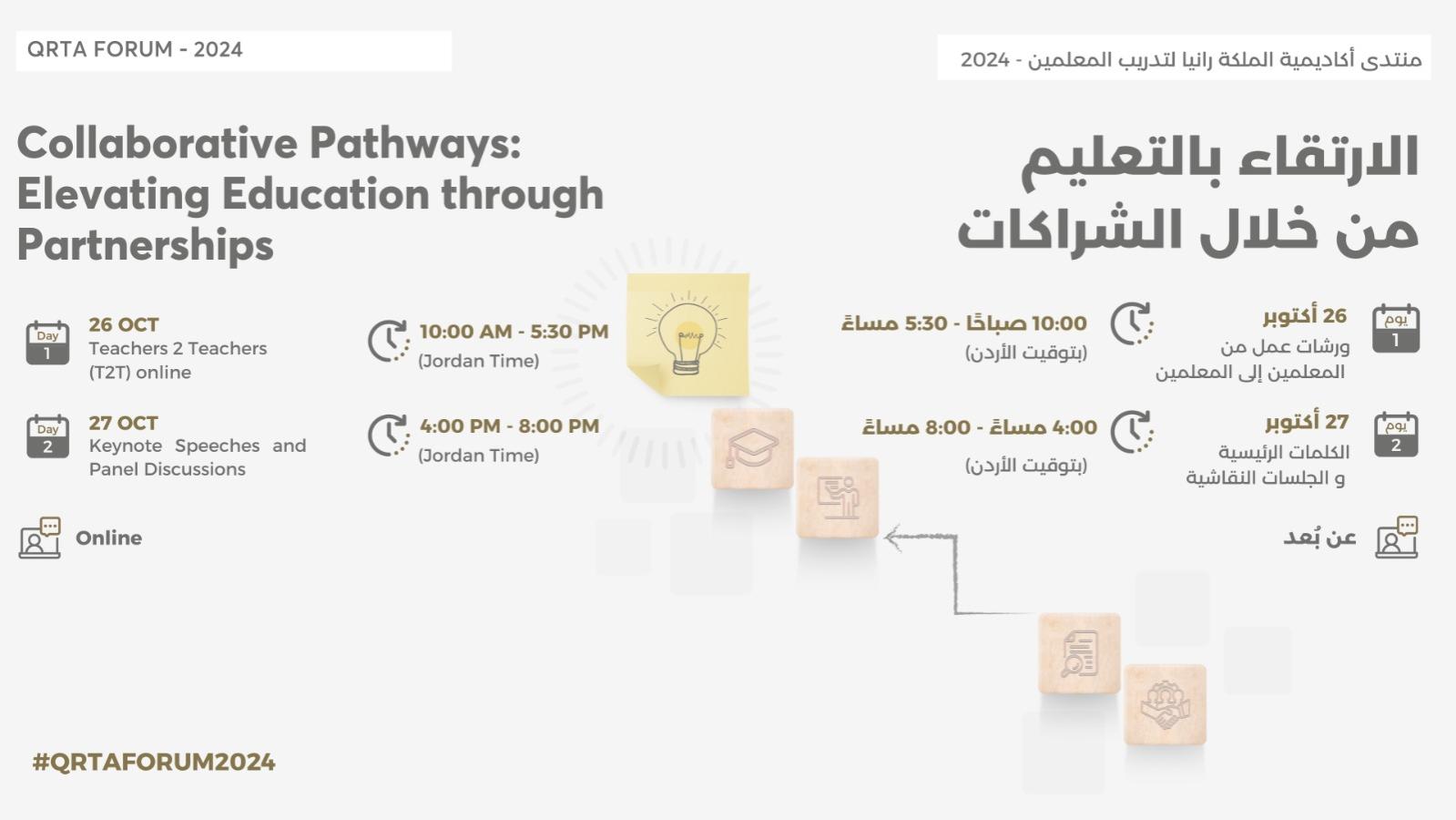 اختتمت أكاديمية الملكة رانيا لتدريب المعلمين فعاليات منتداها السنوي الذي شهد حضورًا واسعًا من التربويين وصناع القرار وممثلين من القطاعين العام والخاص. وجاء المنتدى هذا العام تحت شعار “نحو شراكات تعليمية مبتكرة لتطوير التعليم”، مسلطًا الضوء على أهمية تعزيز التعاون بين القطاعات المختلفة لدعم تطوير واستدامة القطاع التعليمي.