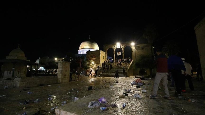 عاد الهدوء إلى الحرم القدسي بعد صدامات عنيفة جرت ليلا بين مصلين فلسطينيين والشرطة الاسرائيلية التي اعتقلت مئات منهم، بعد اقتحام الباحة من قبل يهود، وجاءت هذه المواجهات في أجواء من التوتر المتزايد بين الاسرائيليين والفلسطينيين، وخلال شهر رمضان الذي يعتكف فيه مسلمون عادة في المسجد الأقصى ويؤدون الصلاة ليلا فيه، وأثار اقتحام الشرطة الاسرائيلية للحرم القدسي سلسلة إدانات، فقد اعتبرت حركة حماس التي تسيطر على قطاع غزة، الخطوة “جريمة غير مسبوقة”، وقد دعا إسماعيل هنية رئيس المكتب السياسي للحركة الفلسطينيين إلى التوجه الى القدس من أجل “حماية” المسجد الأقصى، أما زياد النخالة الأمين العام لحركة الجهاد الإسلامي فقد رأى أن “ما يجري في المسجد الأقصى المبارك يشكل تهديدا جديا على مقدساتنا”، وحذرت الرئاسة الفلسطينية أيضا “الاحتلال الإسرائيلي من تجاوز الخطوط الحمراء في الأماكن المقدسة”، مشيرة إلى أن ذلك سيؤدي إلى “انفجار كبير”، كما ورد في بيان بثته وكالة الأنباء الرسمية، وقال أمين سر منظمة التحرير الفلسطينية حسين الشيخ إن “الوحشية” في “الاعتداء على المصلين” تستدعي “تحركا فلسطينيا وعربيا ودوليا ووضع الجميع أمام مسؤولياته في حماية المقدسات والمصلين من بطش الاحتلال”، ودانت الخارجية الأردنية “إقدام شرطة الاحتلال الإسرائيلية على اقتحام المسجد الأقصى المبارك/الحرم القدسي الشريف والاعتداء عليه وعلى المتواجدين فيه”، في ما اعتبرته “انتهاكا صارخا وتصرفا مدانا ومرفوضا”، وطالبت في بيان “إسرائيل بإخراج الشرطة والقوات الخاصة من الحرم القدسي الشريف فوراً” محذرة من “هذا التصعيد الخطير”، من جهتها، أعلنت الشرطة الاسرائيلية صباح الأربعاء أنها أوقفت “أكثر من 350” شخصا في الحرم القدسي. لكن فراس الجبريني أحد أعضاء طاقم المحامين عن المعتقلين لأكد أن عدد الموقوفين يتراوح بين 450 شخصا و500 شخص، وأكد الجبريني تعرض الكثير منهم لإصابات معظمها في الجزء العلوي من الجسد ولا سيما في الرأس والعيون، وأوضح أنه تم “الإفراج عن عدد غير محدد منهم بشروط الإبعاد عن المسجد والبلدة القديمة والمثول للتحقيق عند الاستدعاء”، كما أكد المحامي نفسه تمديد اعتقال “18 موقوفا (فلسطينيا) من حملة الهوية الإسرائيلية حتى عرضهم على المحكمة بالإضافة إلى الذين يحملون الهوية الفلسطينية”، وقال مكتب الأوقاف الإسلامية أن الهدوء عاد إلى الحرم القدسي، ويرفض الفلسطينيون دخول اليهود إلى الحرم القدسي والصلاة فيه، ويعتبرون هذه الخطوة التي يسمونها “اقتحاما” استفزازا لهم.